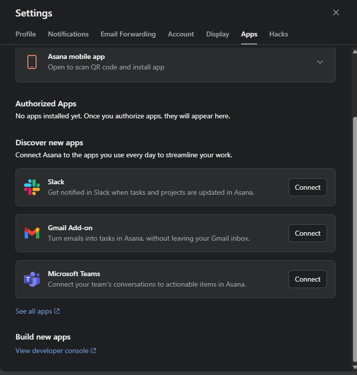 - Esto te redirigirá automáticamente al portal de Asana para desarrolladores.